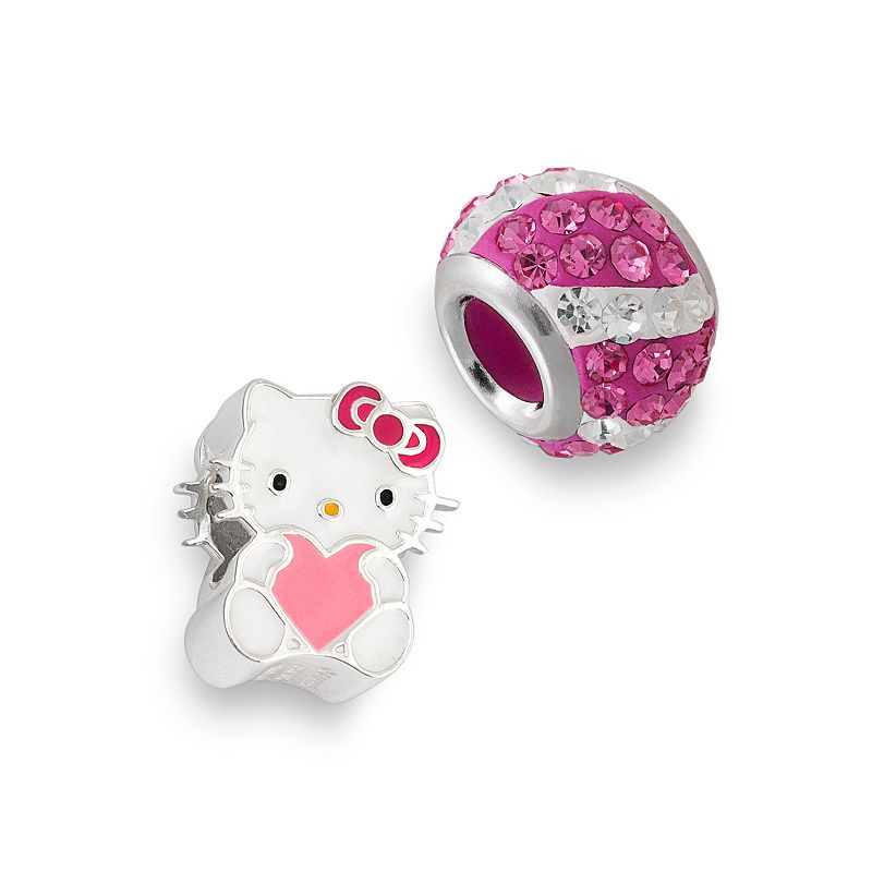 Related Product Hello Kitty Sterling Silver Crystal Striped and Heart Bead Set, Women's, Pink