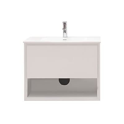 ACF by Nameeks NY44 New York 24-6\/15 Wall Mounted Vanity Set with Wood Cabinet, PVC Glossy White Fixture Single